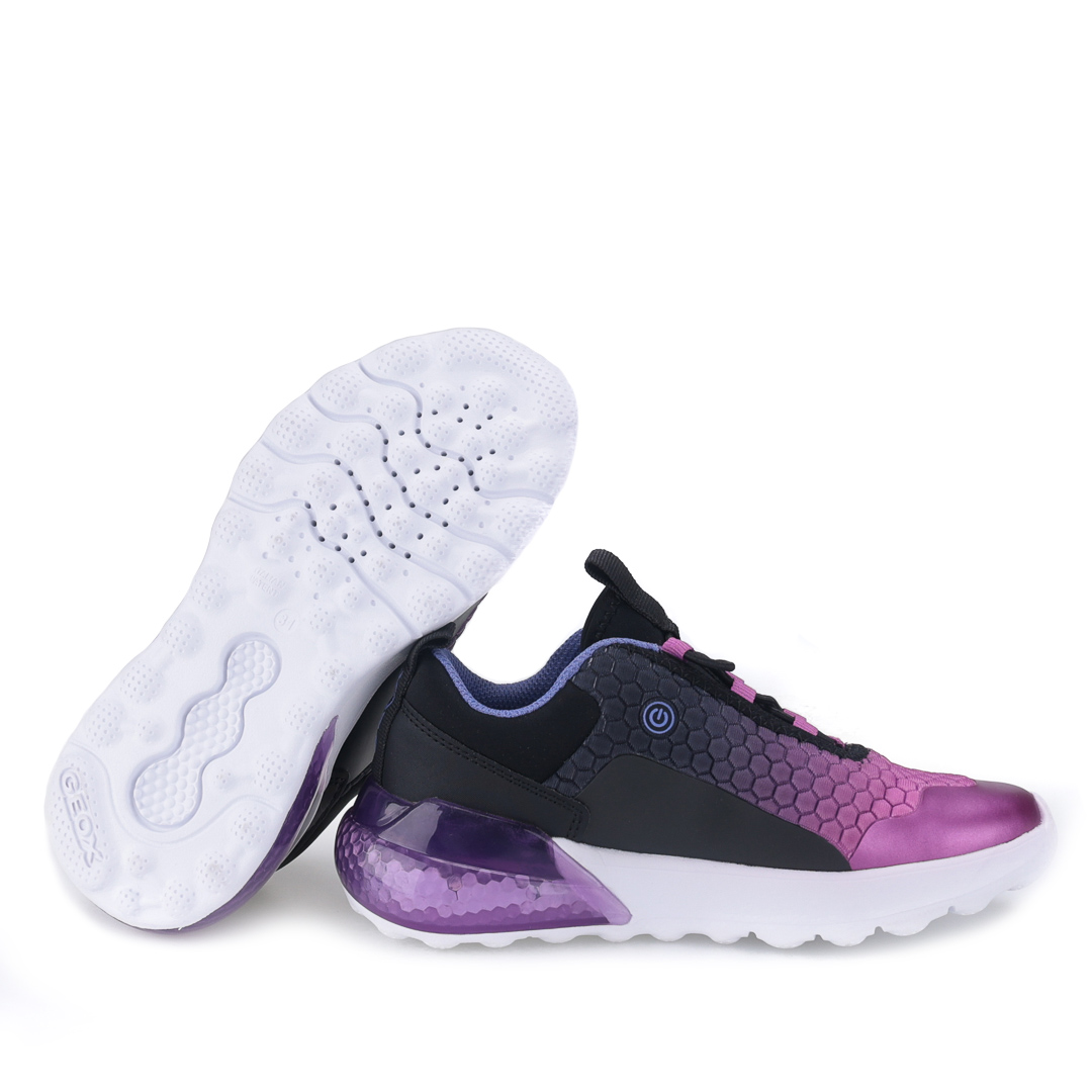 Dziewczęce sneakersy Geox to nowoczesne, wygodne buty, które dosłownie błyszczą przy każdym kroku! Wbudowane migające diody LED w podeszwie sprawiają, że każdy ruch staje się zabawą, a buty przyciągają wzrok swoim wyjątkowym efektem świetlnym.