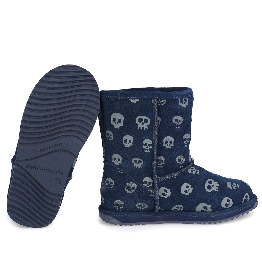 Świecący w ciemności model Skull Brumby to wodoodporne obuwie wykonane z wysokiej jakości zamszu, wyściełane miękką australijską wełną merynosów.