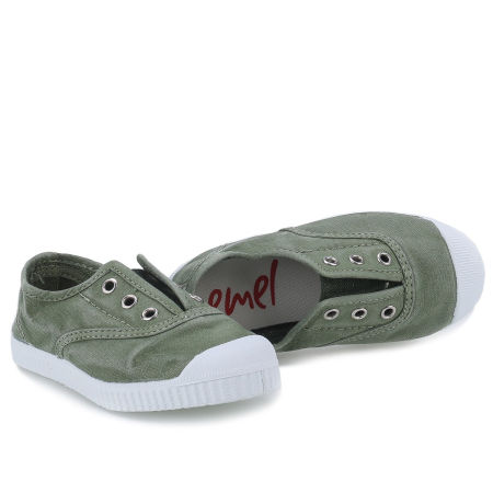 Zielone tenisówki Emel wyróżniają się stonowanym, naturalnym kolorem i klasycznym designem, który łatwo dopasować do codziennych stylizacji dziecięcych. Tenisówki można prać w pralce w temperaturze do 30°C, po wcześniejszym wyjęciu wkładek, co ułatwia utrzymanie ich w czystości.