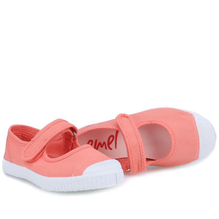 Brzoskwiniowe tenisówki Emel wyróżniają się intensywnym, żywym odcieniem i klasycznym designem, który ożywia dziecięce stylizacje. Tenisówki można prać w pralce w temperaturze do 30°C, po wcześniejszym wyjęciu wkładek, co ułatwia utrzymanie ich w czystości.
