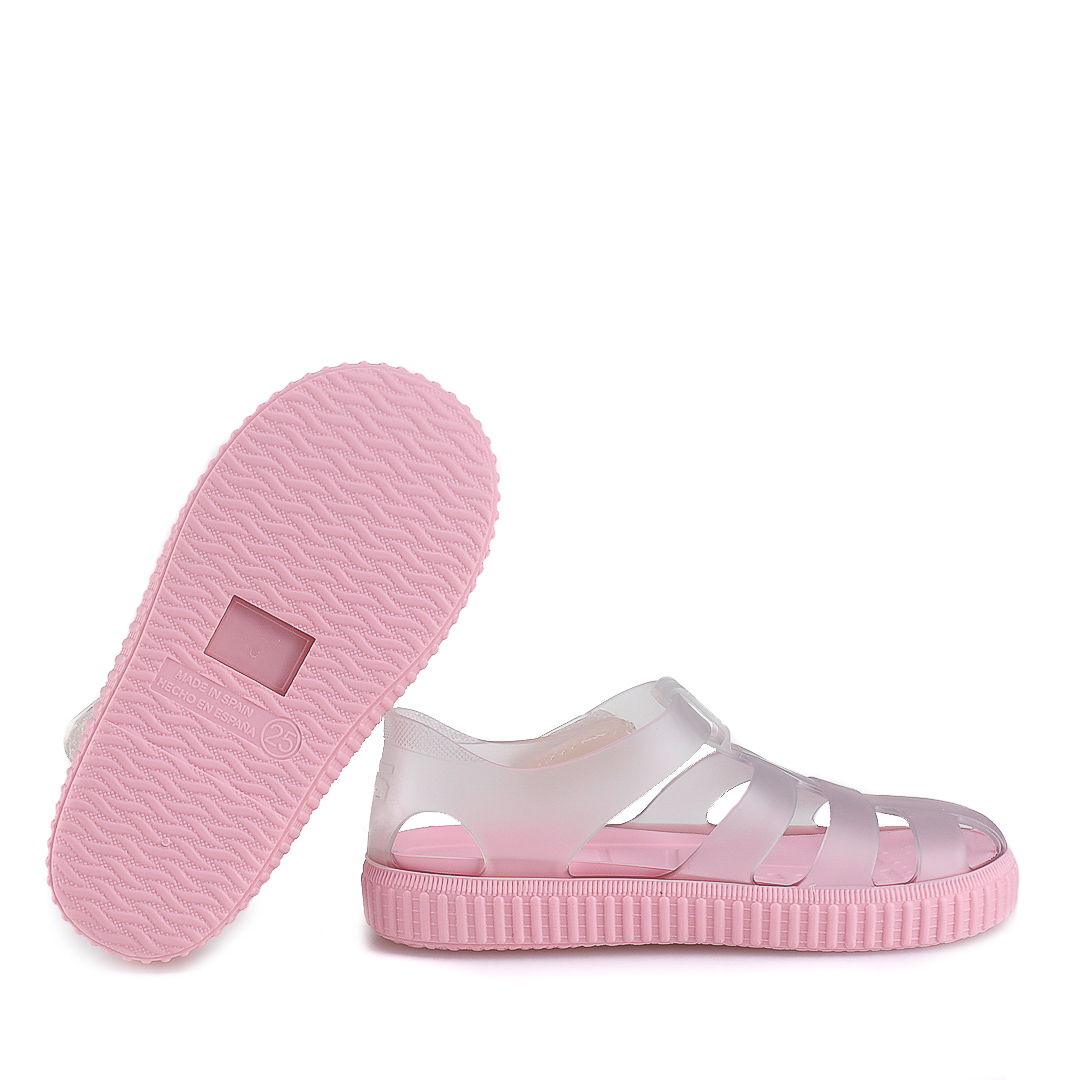 Igor Nico Cristal - gumowe sandały dziecięce wyprodukowane w Hiszpanii. Wykonane z antypoślizgowych materiałów, posiadają zapięcie na rzep oraz gumową podeszwę, która gwarantuje przyczepność i wsparcie, pozwalając dziecku poruszać się swobodnie. Dzięki wodoodpornym materiałom świetnie sprawdzą się podczas zabaw nad wodą, na basenie czy plaży.