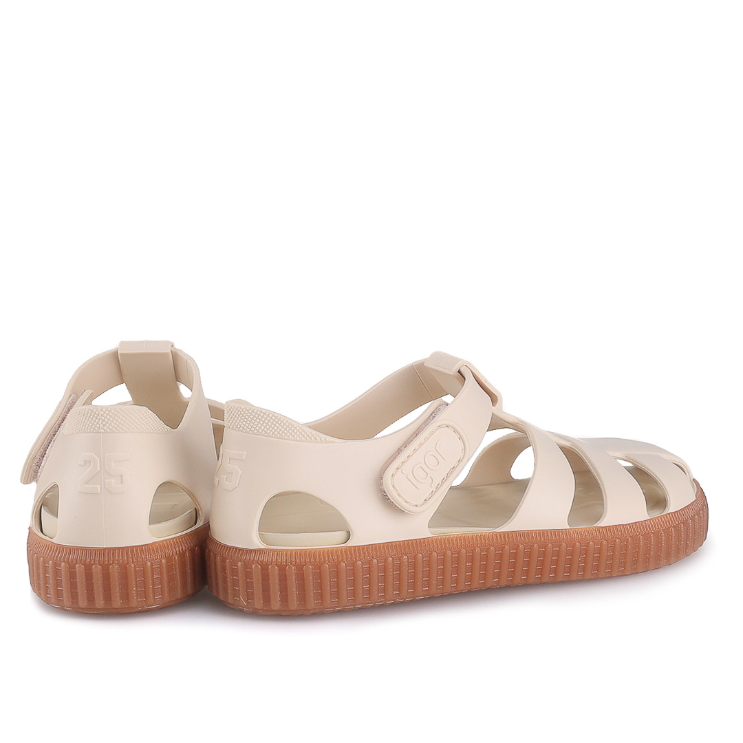 Igor Nico Caramelo - gumowe sandały dziecięce wyprodukowane w Hiszpanii. Wykonane z antypoślizgowych materiałów, posiadają zapięcie na rzep oraz gumową podeszwę, która gwarantuje przyczepność i wsparcie, pozwalając dziecku poruszać się swobodnie. Dzięki wodoodpornym materiałom świetnie sprawdzą się podczas zabaw nad wodą, na basenie czy plaży.